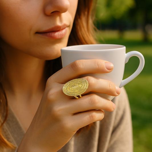 Seahorse Amazonite Stone Ring 18k Gold Plated Adjustable Ring