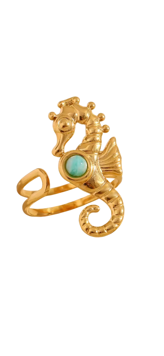 Seahorse Amazonite Stone Ring 18k Gold Plated Adjustable Ring