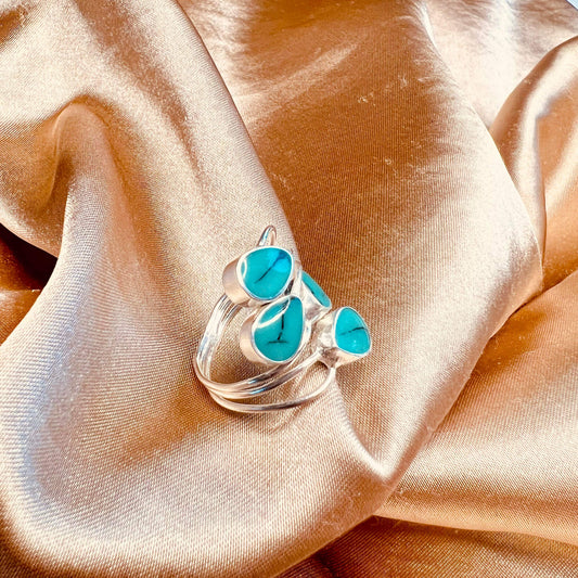 Adjustable Cluster Ring Sterling Silver Turquoise