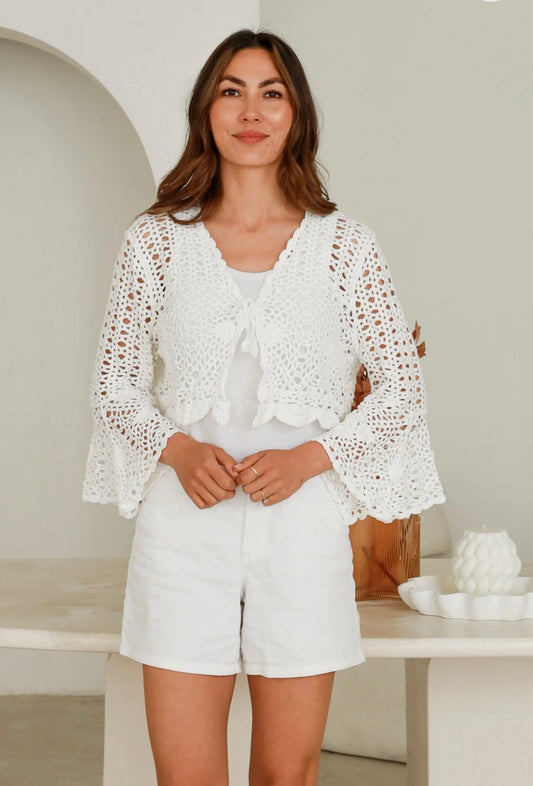 Bolero Flared Sleeves Crochet Cotton Overlay