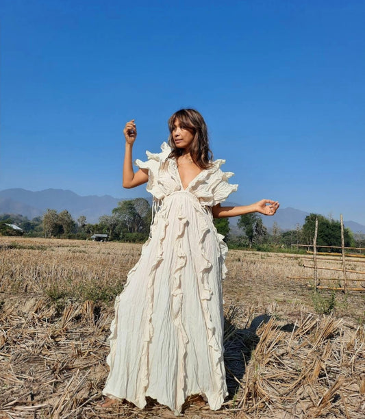 Bohemian Ruffle Maxi Dress With Side Ties