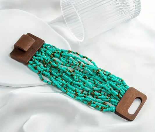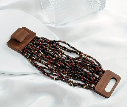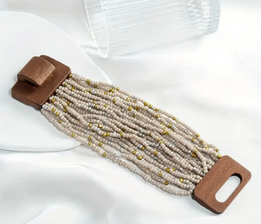 Wood Buckle Multi Strand Elastic Stretch Beaded Bracelet