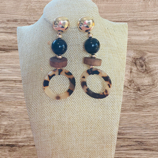 Leopard Earrings Natural Wood Circle Drop Style