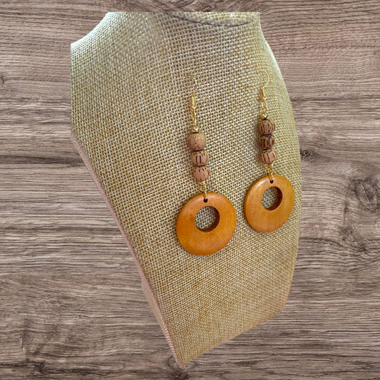 Wood Beads Earrings Dangle Drop Round