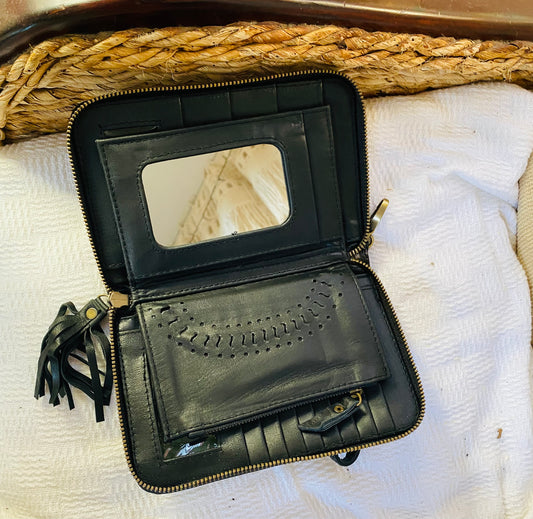 Rattan Mesh Rustic Phone Wallet Bag Leather