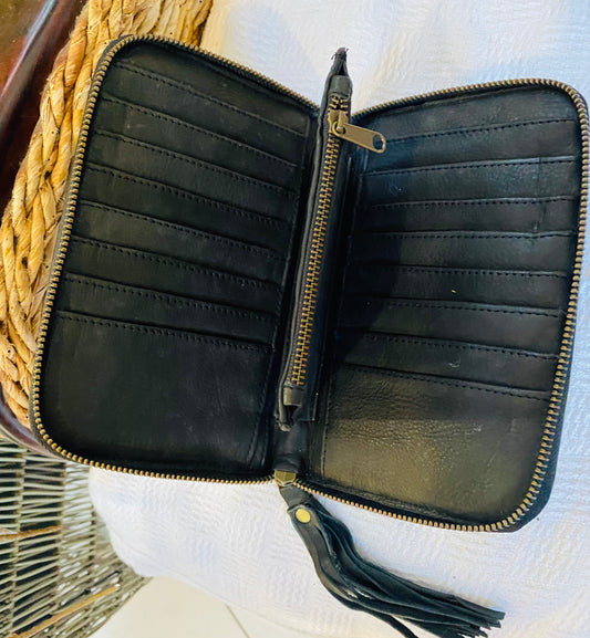 Cosmic Sun Leather Wallet Black With Turquoise Stone