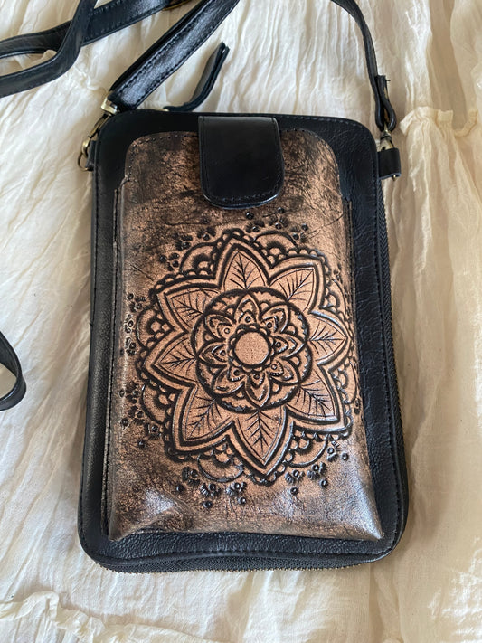 Mandala Flower Phone Wallet Bag Genuine Leather