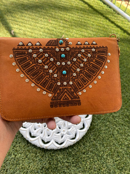 Bohemian Leather Crossbody Bag - Handmade & Hand-Painted