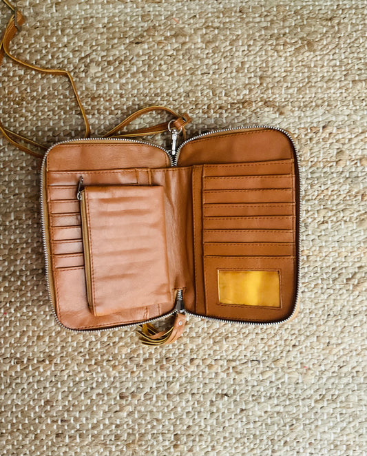 Orchid Leather Satchel Bag with Fringe Tassels Tan