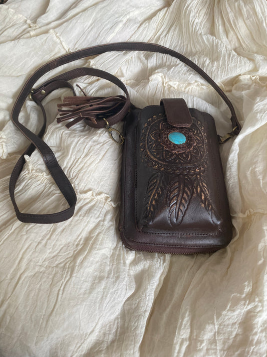 Dreamcatcher Phone Wallet pouch Travel Bag With Turquoise Stone
