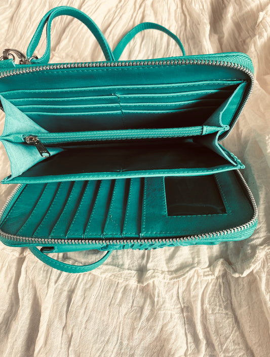 Lotus Phone Wallet Pouch Bag With Turquoise Stone