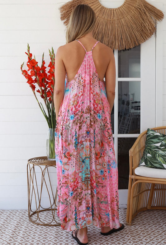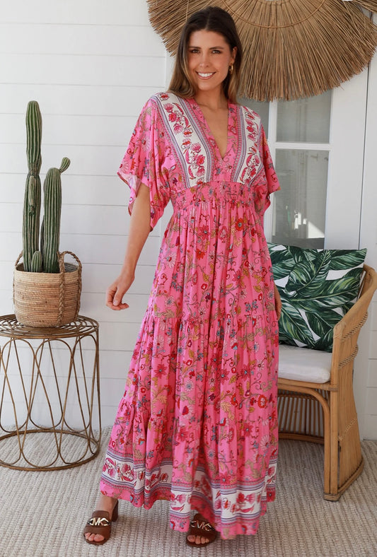 Kellina Boho Floral Pink Maxi Dress