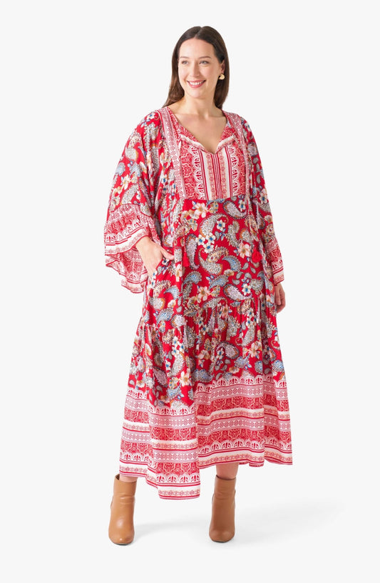 Lelia Print Maxi Dress With Long Bell Sleeves