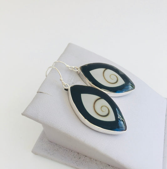 Cowrie Shell Fan Earrings Sterling Silver