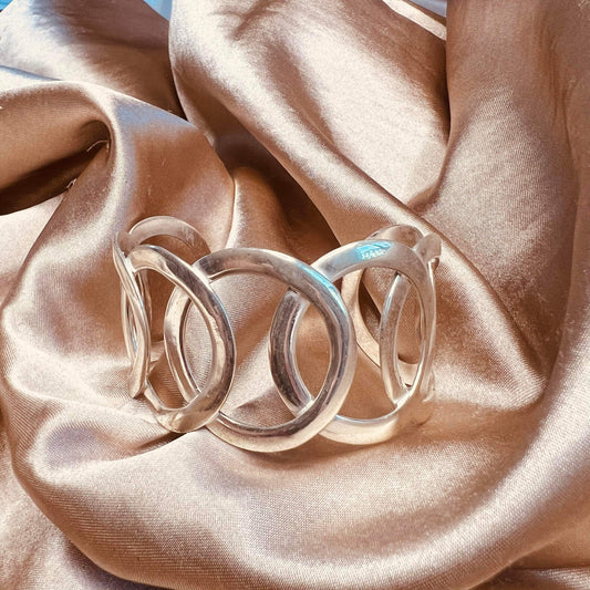 Sterling Silver Cuff Bangle Hollow Cut Circles