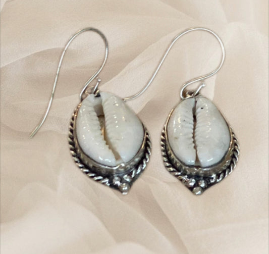 Cowrie Shell Filagree Earrings Set Into Sterling Silver