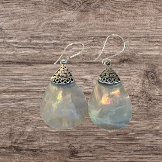 Capiz Clear Shell Drop Earrings Sterling Silver
