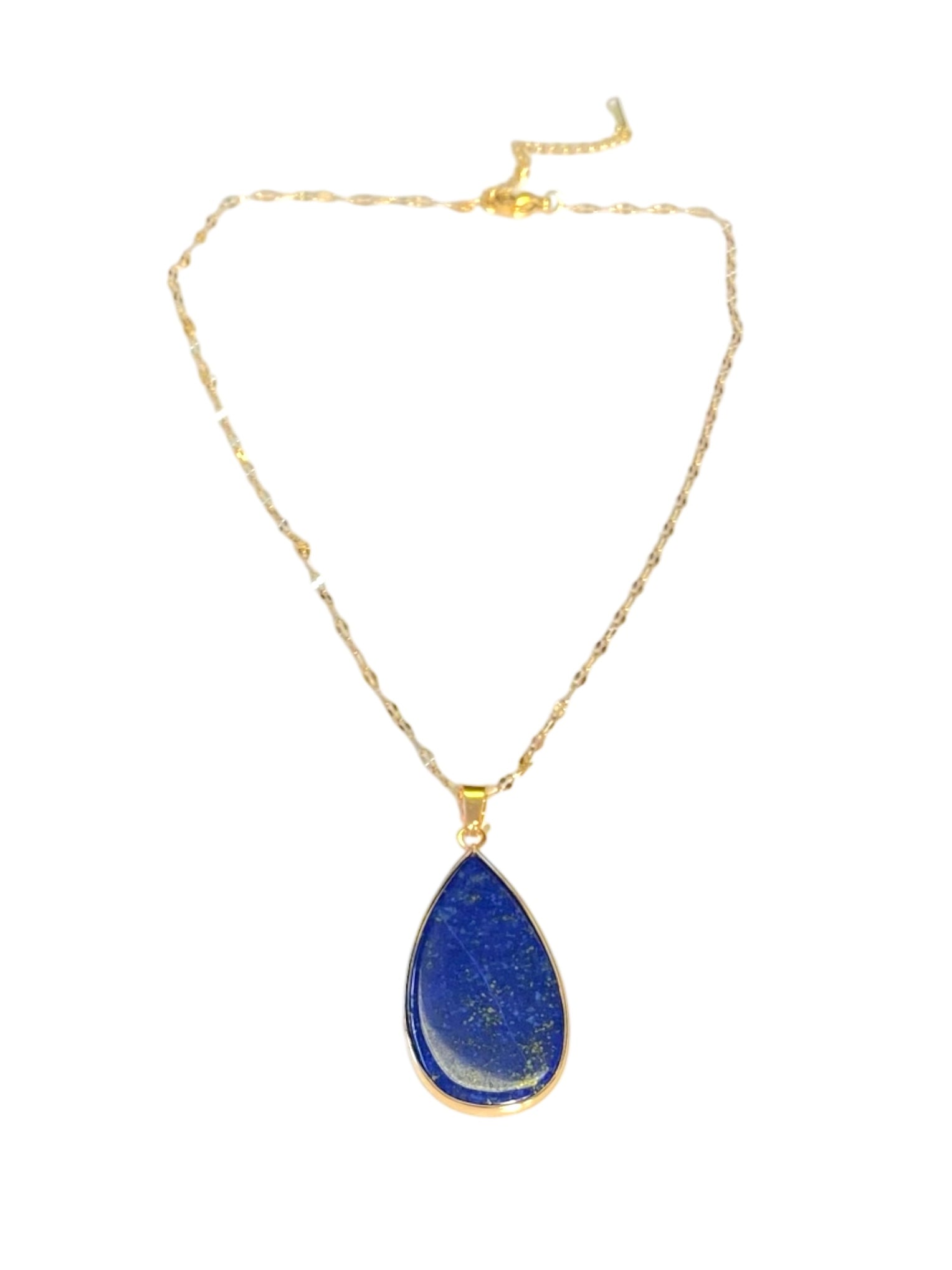 Natural Lapis Stone Teardrop Pendant Necklace 18k Gold Plated
